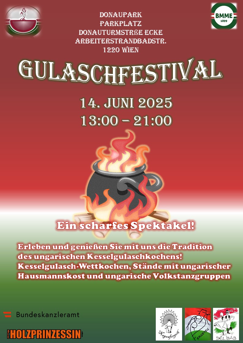 Das Gulaschfestival Wien verbindet österreichisch-ungarische Tradition, Wiener Gemütlichkeit, herzhafte Kulinarik und ein scharfes Kochduell. 25 Teams aus Österreich, Ungarn und Vojvodina traten gegeneinander an um das beste Kesselgulasch des Jahres zu kochen. Eine Jury, die aus Fachleuten und auch Leien bestand, kürte das Siegergulasch. Der Wanderpokal wird jedes Jahr vom Vorjahressieger verteidigt oder an das neue Siegerteam weitergereicht. Die 3 besten Gulasche wurden mit symbolischen Preisen gekürt.